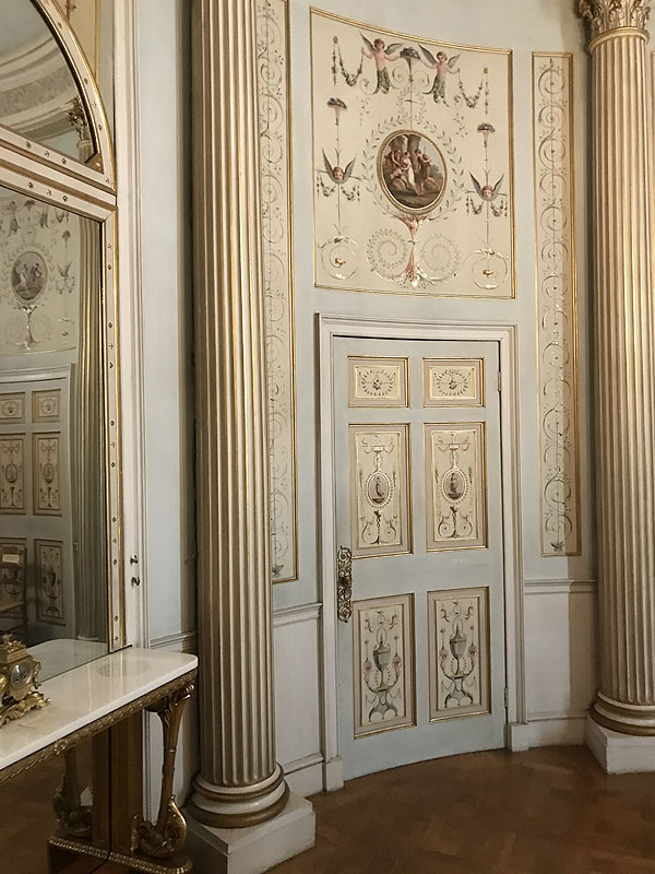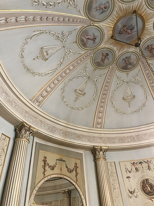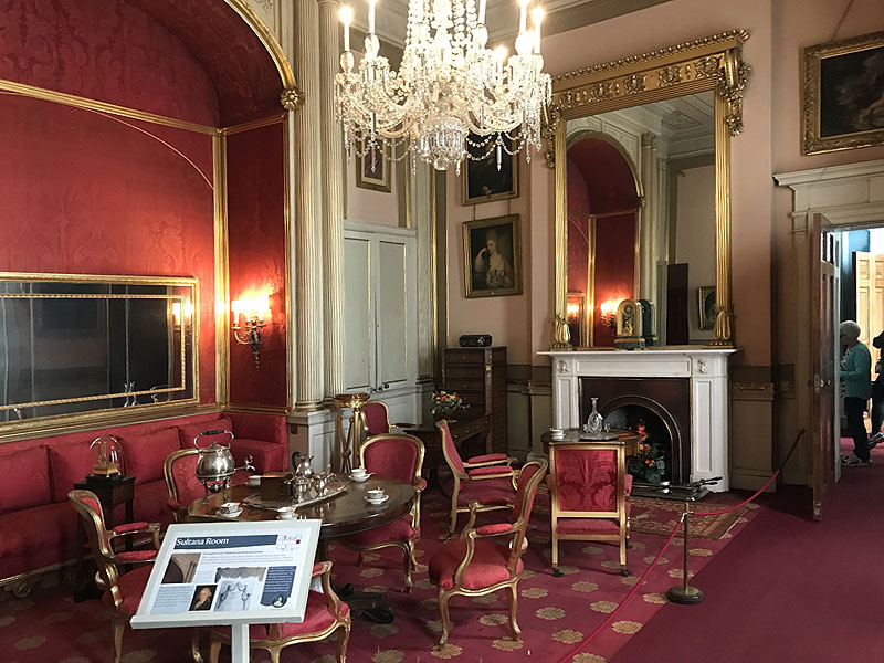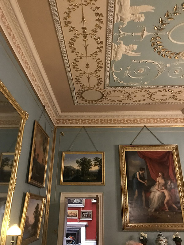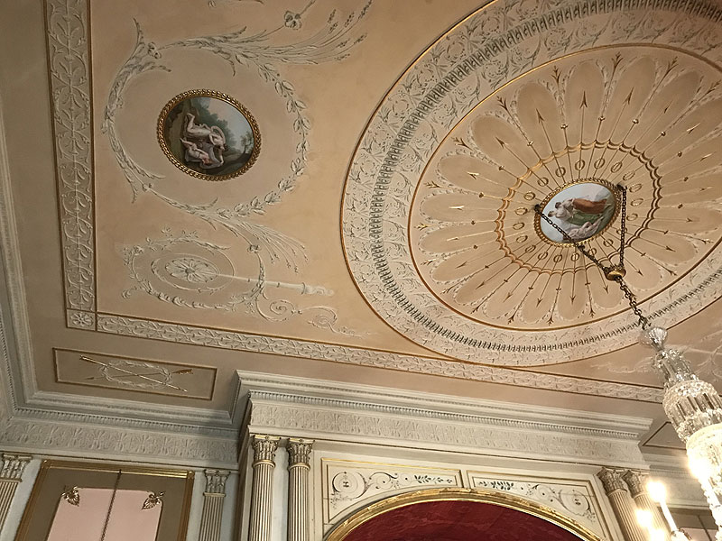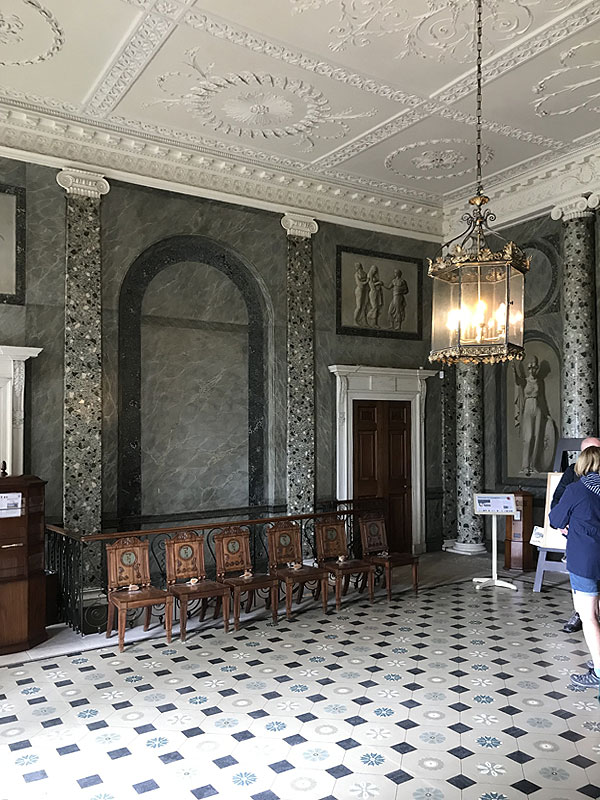 The grand rooms on the principal floor are all on display, with masculine styled rooms on one side of the house, and feminine themed rooms on the other. The principal rooms with their superb decorations and plasterwork are well worth a visit, but upstairs seems to be a work-in-progress and most of the upper floor is not open to the public. The service basement and kitchens are open to visitors.