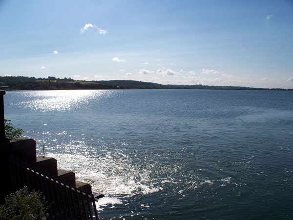 If you pass a gate and climb the bank behind the buildings, you will be confronted by the vast expanse of the George V reservoir.