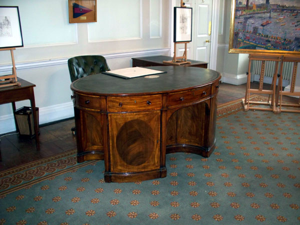 On the visitor tour one gets to see the stairwell, the central lobby, Wellington’s room with his partner desk (now used as a major-general’s office), the front room with various paintings, and the descending stairwell.