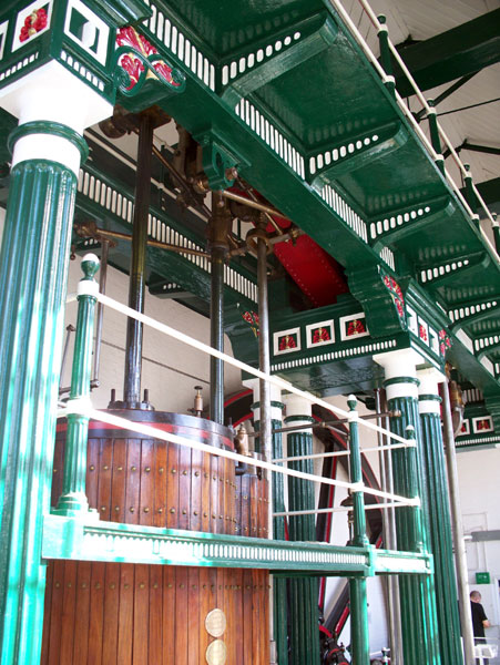 The 100hp beam engine still stands in its original engine house, and was restored to working order in 2009. Steam is provided by two oil-burning boilers in a new single storey boiler room.