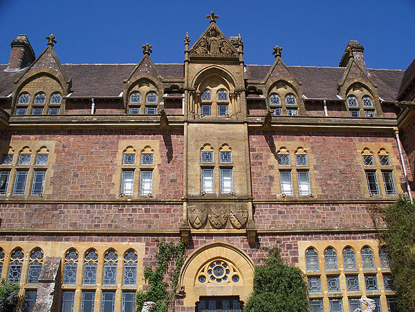 The house was built in 1869-1874. Designed in a Gothic style of gables and mullioned windows by noted Victorian medievalist William Burges, it was intended to conceal interiors of exceptional richness. The client however shied away from Burges’ riotous designs, and few were carried out. Instead, Heathcoat-Amory hired John Diblee Crace, but even his designs were thought too bold and colourful, and were largely covered up in later years. The National Trust has sought to restore the nineteenth-century work wherever possible. The vast gardens, based on a nineteenth-century design but greatly enlarged by the 3rd baronet and his wife, are much admired.
