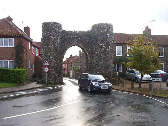 Castle Acre Village and Bailey Gate: At the same time that the castle was being fortified, a planned town was being built alongside, protected by earthwork defences and stone gatehouses. The north or Bailey Gate still survives, with the village street running between its towers. The village streets have some older buildings, and the ancient street layout can still be traced.