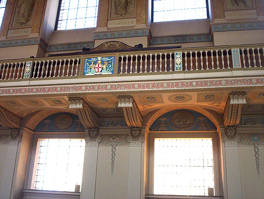 Painted Hall: The Hall “probably the finest dining hall in the Western World” is decorated with huge paintings by James Thornhill. It was intended as a dining hall for the pensioners, but never used as such, for when finished it was considered too grand and too much of a tourist attraction. The body of Admiral Nelson lay in state here.