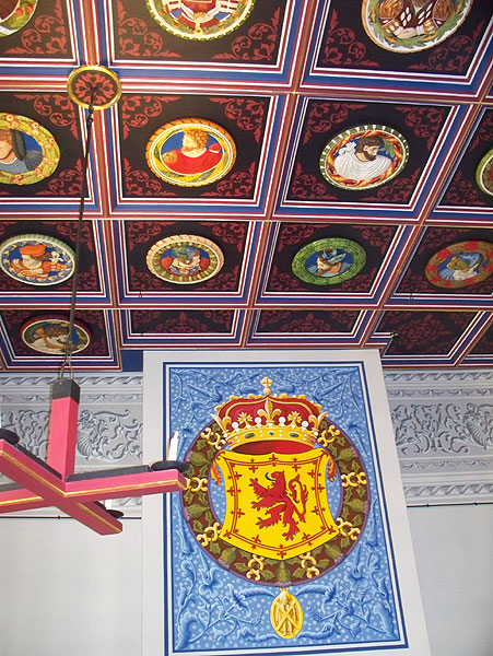 The Great Hall was built by James IV from 1497 onwards. It had a hammerbeam roof and decorated crenellated parapet (now recreated in a recent restoration)
