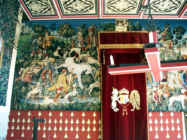 The first record of Stirling Castle dates from the 12th century, but most of the buildings withing the walls date from the fifteenth and sixteenth centuries. The Palace was used as an army barracks until 1965. Now traces of army occupation have been removed and the original Renaissance interiors are being recreated where possible.