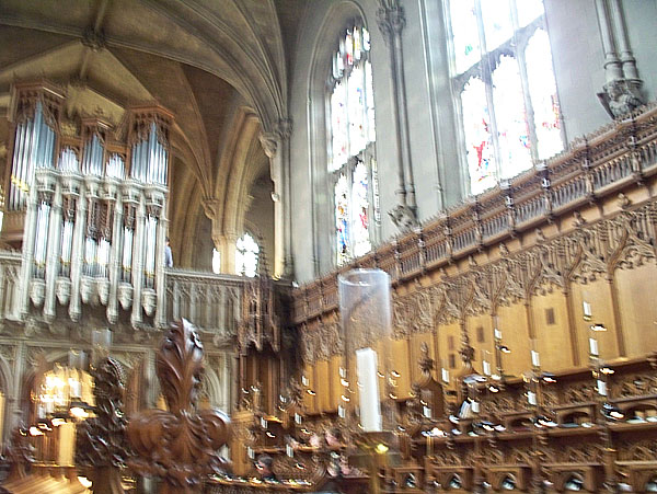 Visitors are welcomed at certain times (entrance charges payable) and allowed to wander around the public areas (not the student areas) and admire the historic buildings. The Chapel and Choir are famous, and the Chapel, with its largely 19th century interior, is very impressive. The Hall is also worth seeing, as are the quad with the cloister and gargoyles, and the exteriors of other buildings.