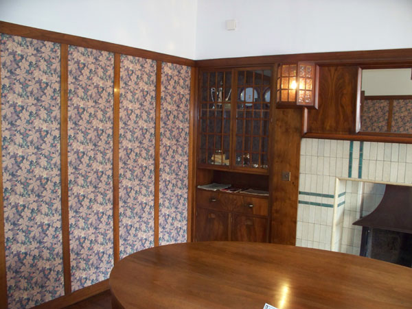 At first floor level are the principal bedroom and the bathroom. The bedroom is relatively conventional, and has a balcony. The bathroom was modern in its day and is papered with a washable mosaic design.