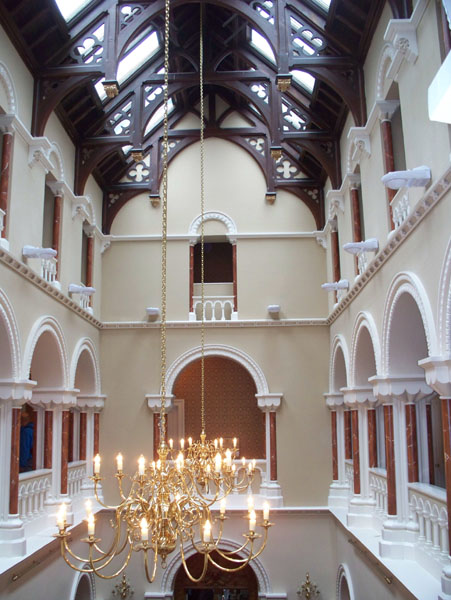 The adjoining Admiralty House was built in 1785 as the residence of the First Lord of the Admiralty, and the ground floor contains an elegant suite of staterooms. There is a steep, doubly-wound stair lit by a elegant lunette.