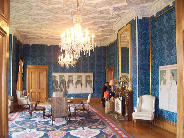 The double-height Blenheim Saloon has ceiling paintings originally made for the Queen’s House at Greenwich, wall paintings depicting the battle of Blenheim, and other art. Downstairs are a series of finely decorated staterooms, with art. There are two stairwells with wall-paintings.