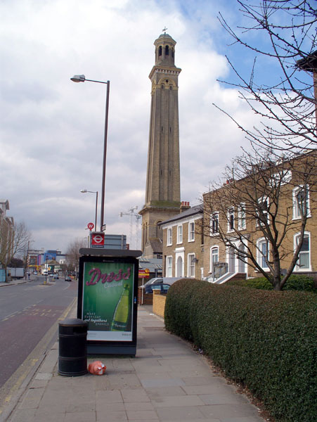 The tower is not a chimney, but contains a pressure-balancing water standpipe.