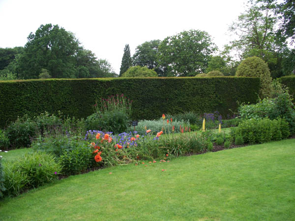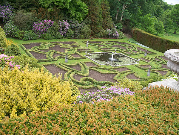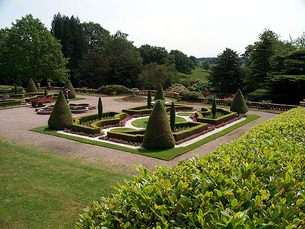 The gardens, mostly to the south, are very fine, with a lake and large changes of level. The Dutch formal garden seen from far above is particularly impressive. There is also a substantial park (not seen).