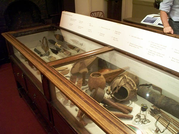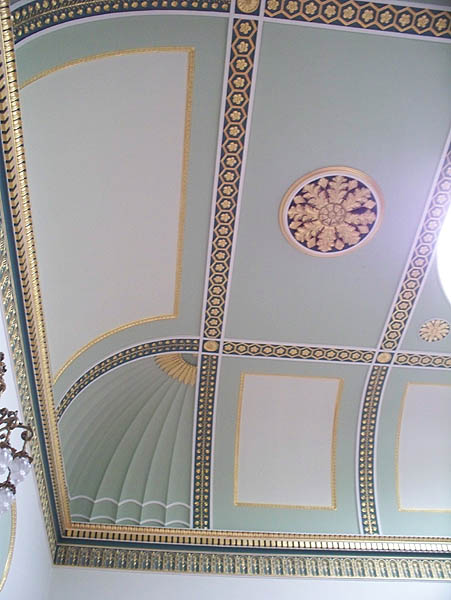 The house is a splendid example of Gothic Revival style, a style which later influenced much of Victorian architecture. The ceilings in the principal rooms are fan vaulted in plaster in a manner apparently inspired by Westminster Abbey. In the principal sitting-room the ceiling is more ornate and more high-relief than one could believe possible if one had not seen it with one’s own eyes. Above the present entrance front is a long gallery with many curios on display, including a collection of antique firearms and native weapons.