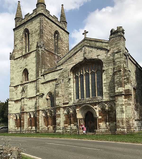A few dozen yards from the house, on the opposite side of the road, is a church, now reduced to a quarter of its original size, all that remains of the priory. Materials were taken from the demolished east end of the church to to build the H-shaped Tudor house.