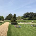 Outside, the west side faces a grassy court, and the south side faces a formal garden of 18th century design. The house is set in an expanse of parkland.