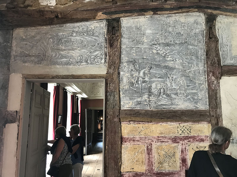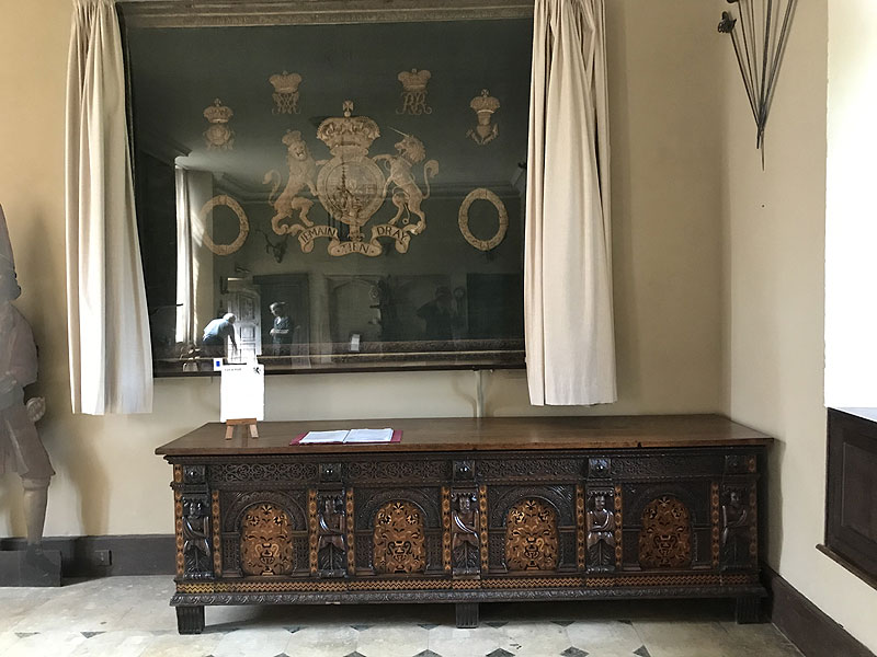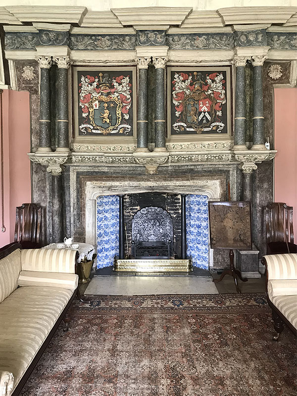 The visitor enters across the courtyard and into the great hall. The drawing room upstairs is dominated by a massive Elizabethan fireplace, and has a domed plasterwork ceiling covered with carving and with a massive central pendant. Other notable rooms include the Painted Parlour, with trompe l’oeil decoration. The old kitchen and other service rooms can be viewed.