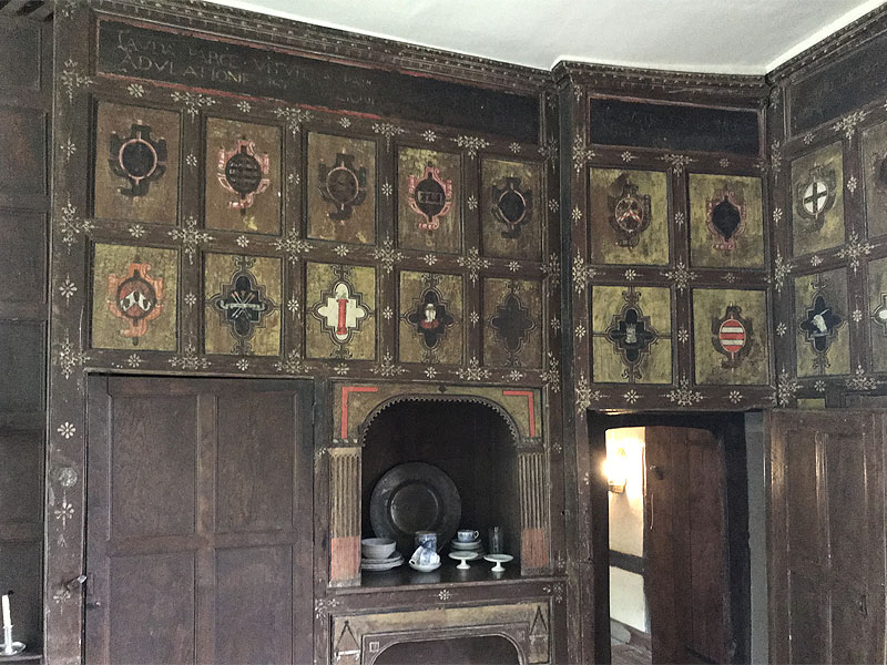 Now (2016) the Long Gallery is a through route, and two small rooms opening off it can be viewed. Descending to the Winter Parlour and kitchen, one can visit two servant’s rooms en route.