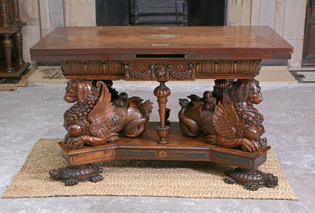 In the Dining Room the Sea-dog table is supported by four superbly carved chimeras and four tortoises.